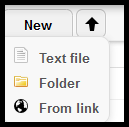 Clicking on the New button will result in a menu with three options: create a new Text file, a new Folder or to create a new file From link.