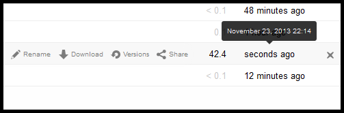 You may want to change a file's settings, for example to Rename, Download, revert to older Versions, Share or delete the file (marked by the X). If you hover over the file with the cursor you will see the options to achieve these things.