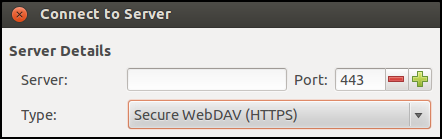 The URL that you have to enter into the Server: box is the same as the URL you use to log in via the web, but with /remote.php/webdav added to the end.