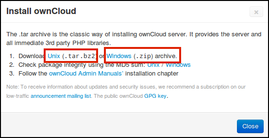 Point your browser to the install page of ownCloud at http://owncloud.org/install/