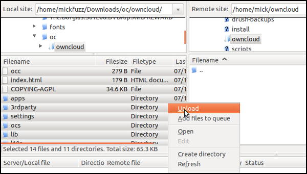 Connect to the server with your server login details and copy all the unzipped files to the directory on your server you are going to use as the home for your ownCloud directory.