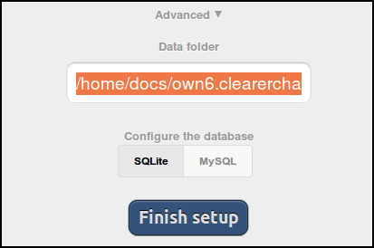 This section covers how to install ownCloud with the web installer and using an external database MySql.