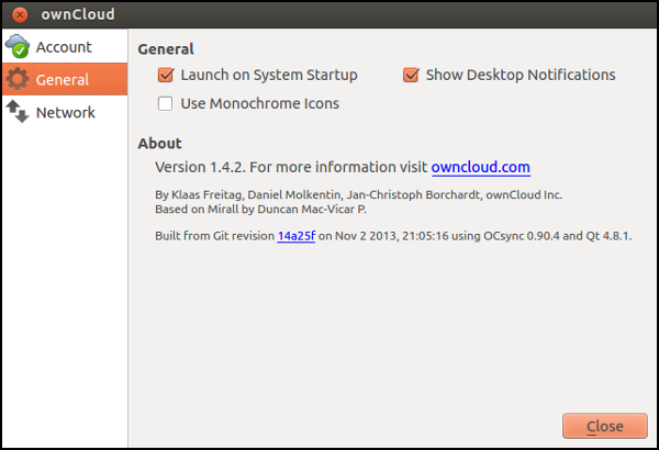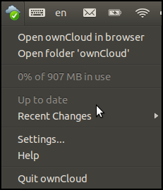 - Quit ownCloud: This exits the ownCloud settings until you restart your computer