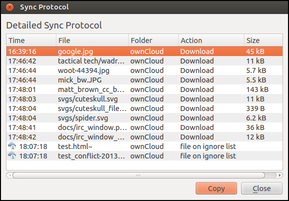The Info button gives a more detailed view of the files that have been transferred or any problems with the synchronization.