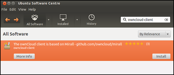 Now you have installed the repository, you can search for owncloud-client in the top right of the Software Center.