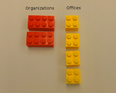 The next picture shows the relationship between the records - every "organization" can have one or more "offices".