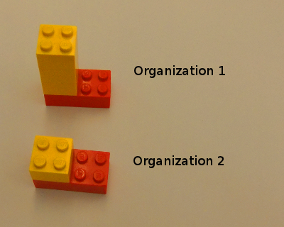 The following pictures illustrate the relationship between records in database tables and resources. Each Lego piece represents a single record in the database, while the different colors and sizes symbolize different database tables: