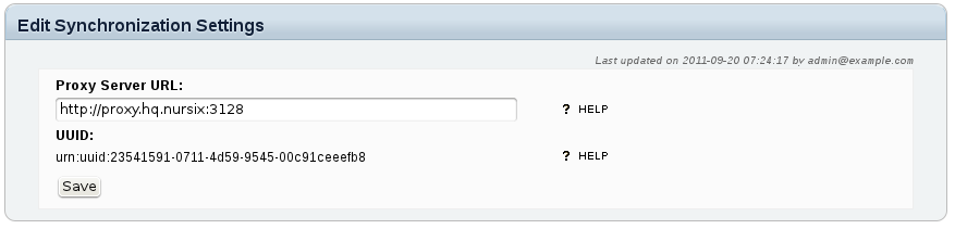If needed, enter the complete URL of the proxy server (including port number if not 80) that is to be used when connecting to the passive site (this is only necessary at the active site). Click Save to update the configuration.