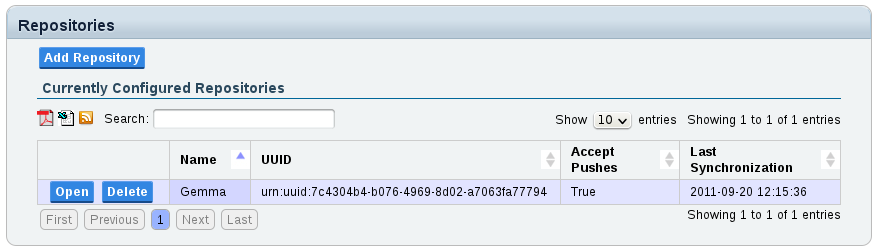 Go to the Synchronization Homepage and click Repositories. This will show you a list of all currently configured repositories: