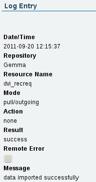 If you instead want to see the log entries only for a particular repository, go to the Synchronization Homepage, click Repositories, then Open the respective repository configuration and go to the Log tab: