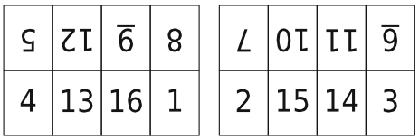 Below we see a scheme of imposition depicting the distribution of a 16 page document on 2 sides of a sheet of paper. When properly folded and then cut, the pages will be in the correct order on 4 smaller sheets of paper.