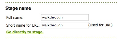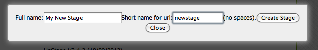 A dialogue box will open over the page. Enter a name for your stage and the URL - this can be the same as the name, but it can't have any spaces in it.