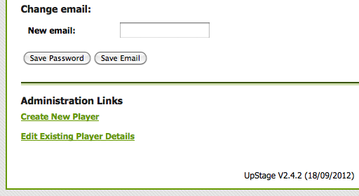 If you have administrative permissions, you will also have the ability to create new players, edit the details of existing players, and delete players. You will find these Administration Links below the save buttons at the end of your details.