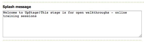The splash message appears on the screen while a stage is loading; you can use this text to give some information about your show. After editing the text, scroll to the bottom and click Save.