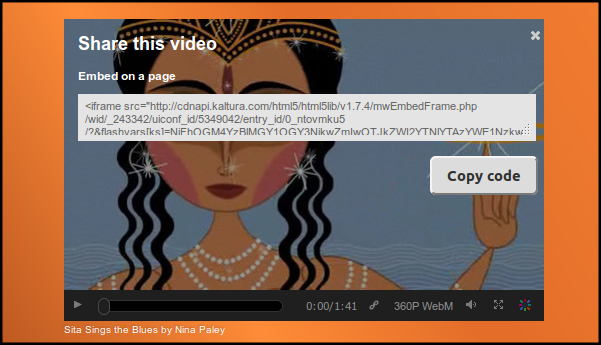 Kaltura Video player with a nice option to embed video on a page