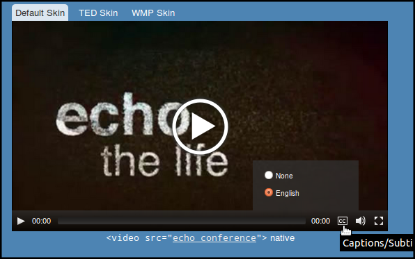 MediaElement.js player with an option to display captions and use different looks or skins