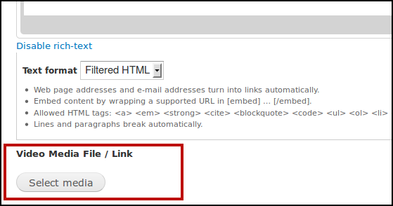When we add our video content, now we can see a Select Media button.