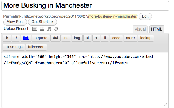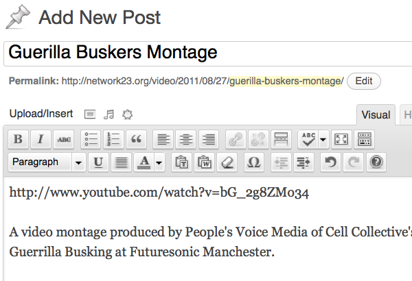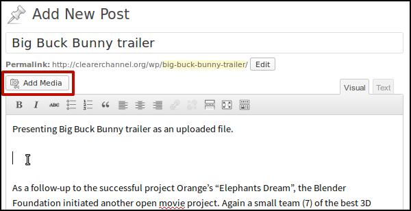 Then in your WordPress blog you can add a new post, give it a title, write a short description and then paste (right-click > Paste) the URL of the video where you want it to appear.