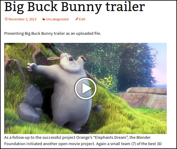 [video width="640" height="360" mp4="http://clearerchannel.org/wp/wp-content/uploads/2013/11/big_buck_bunny.mp4"][/video]