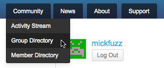 To join a Group in your BuddyPress network, go to the Group Directory by clicking this menu item under the Community tab.