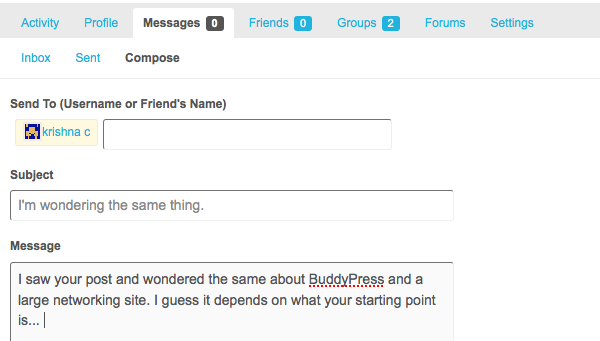 If you want to send a Private Message, click on that button to go to the message section of your BuddyPress Dashboard.