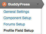 To add extra fields for information, navigate to Profile Field Setup under the BuddyPress menu.