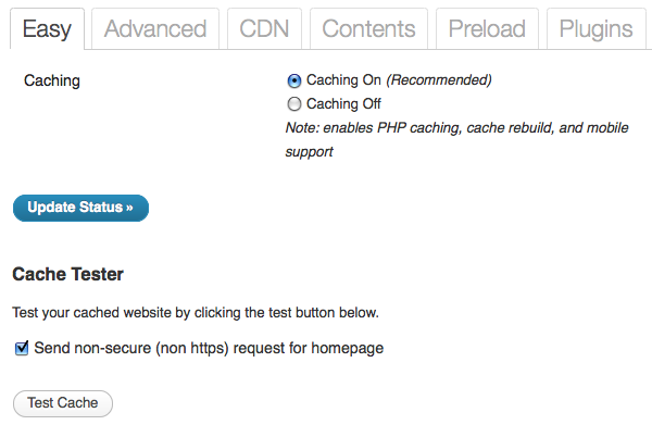 For more information on setting up the plugin via the advanced settings, visit the home page of the WP Super Cache plugin. 3