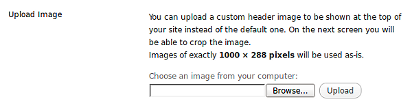 We are going to upload a new header image. If you have access to an image manipulation programme you can make your image be exactly the right size. For this theme, that size is shown as 1000 (wide) x 288 (high) pixels.
