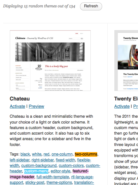 You can see that the results show the themes which are tagged with the features that we asked for.