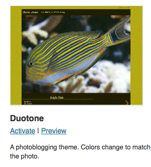 Normally if you are browsing for themes you will click on Preview. You will then see a preview of your own WordPress blog in the style of the theme.